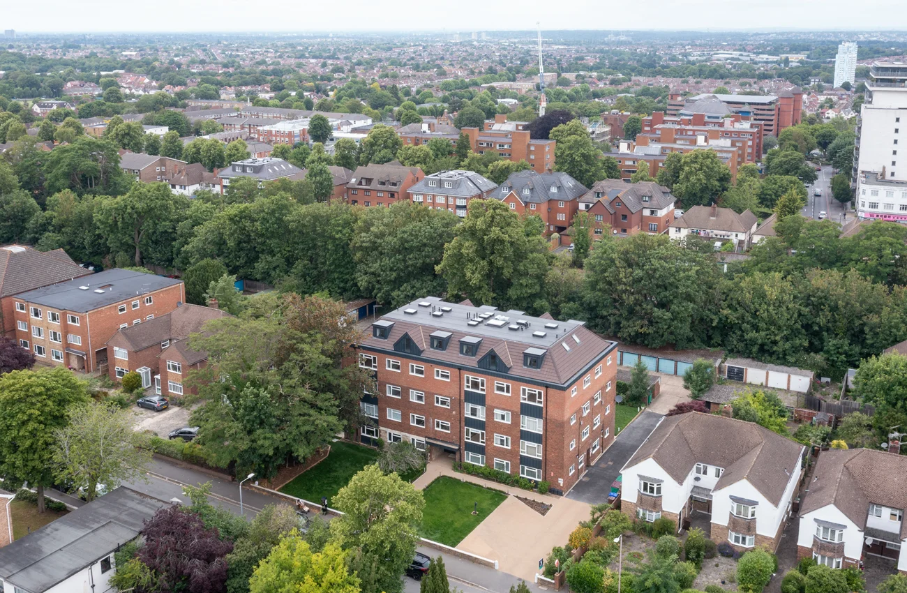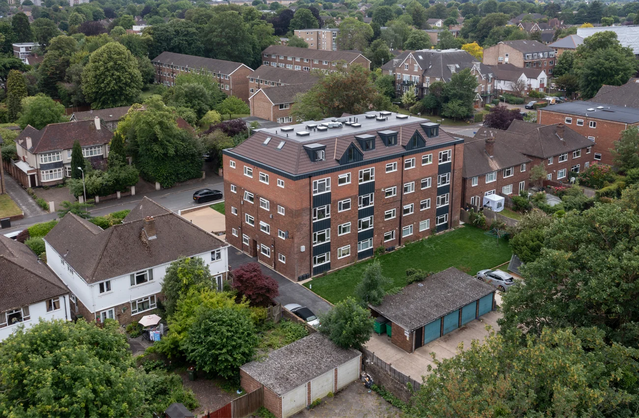 The project involved the erection of a two-storey upward extension above an existing residential building to deliver six new self-contained apartments. In addition to the airspace construction, the scheme included associated car parking provision and landscaping works, all delivered while the original 17 apartments remained fully occupied.